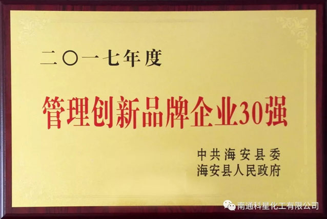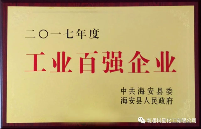 南通科星化工有限公司榮獲“管理創新品牌企業30強”、“工業百強企業”兩大榮譽稱號,這對科星來說既是榮譽也是動力。