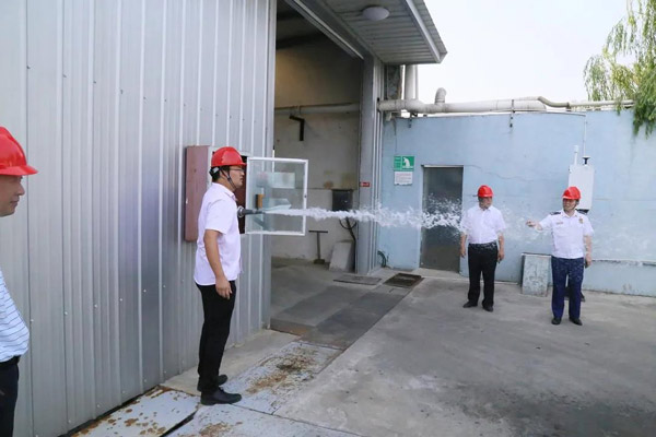 2020年9月7日,海安市委常委、副市長盧忠平帶隊(duì),對科星化工生產(chǎn)廠區(qū)開展安全工作檢查。每到一處,消防、環(huán)保等領(lǐng)域?qū)<艺J(rèn)真仔細(xì)檢查,詳細(xì)了解消防安全、原料儲存安全等情況。科星化工董事長吳龍鐵全程陪同,并匯報(bào)了安全及環(huán)保各項(xiàng)工作情況。