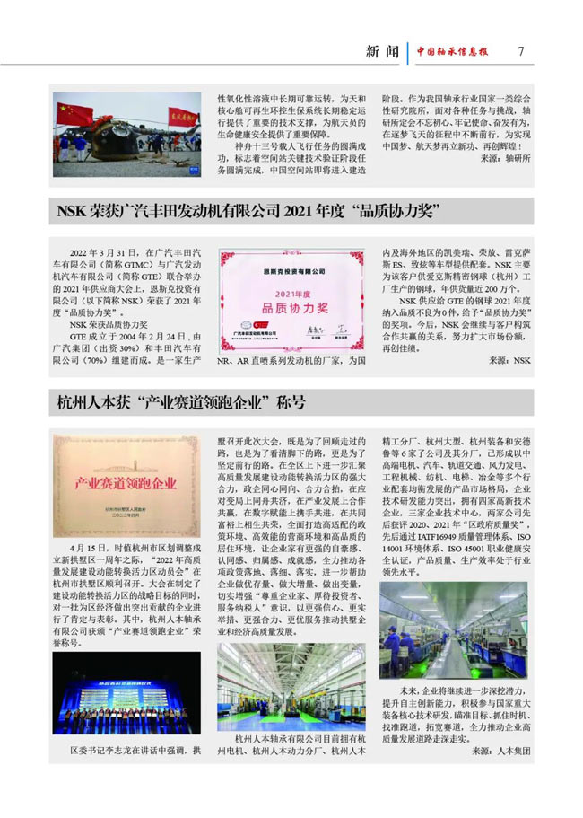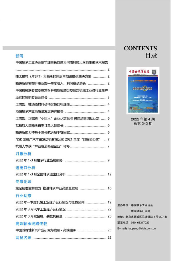 中國軸承信息報2022年第4期節(jié)選轉(zhuǎn)載,科星化工詳見第八頁。