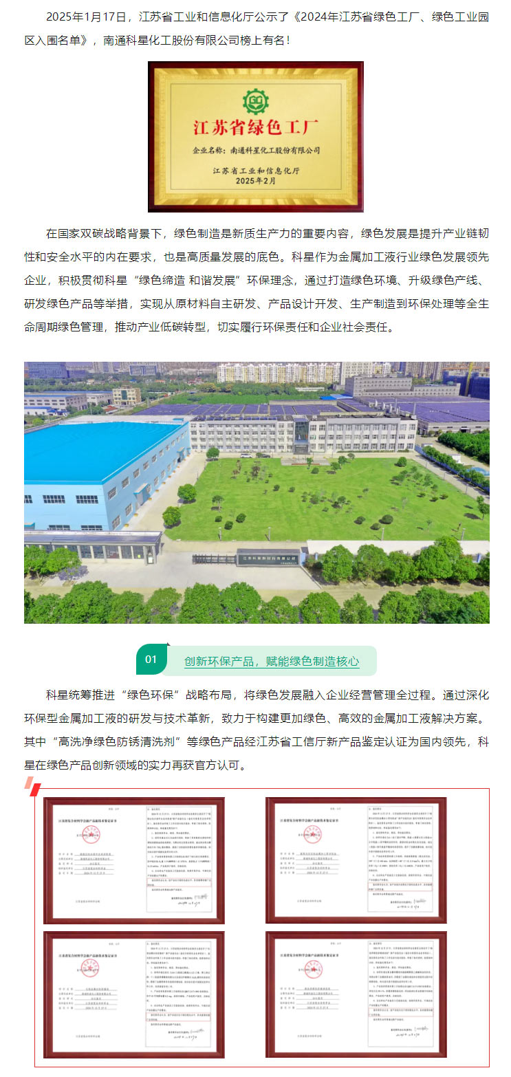 再添“綠名片”!科星化工入選江蘇省級“綠色工廠”