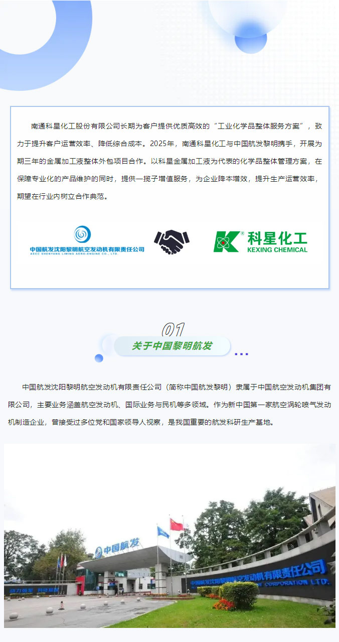南通科星與中國(guó)航發(fā)黎明開(kāi)展為期三年的切削液整體外包項(xiàng)目合作