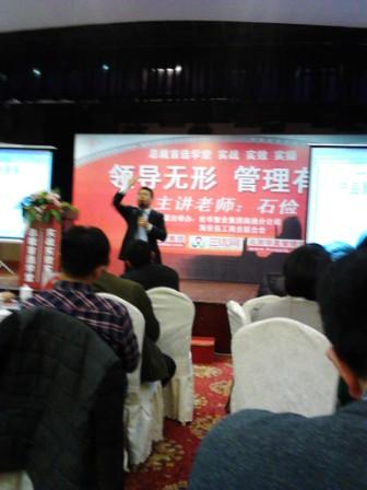 11月26日,吳總在海安錦隆大酒店參加了世華智業集團、北京華夏管理學院由石儉老師主講的《領導無形、管理有道》的講座,吳總受益匪淺。吳總講,我們將揚長避短,博眾之長,將有效的經驗運用到平時的管理之中,使公司的管理再躍新臺階!