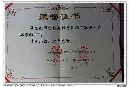 吳總被評為“海安十大環(huán)保標(biāo)兵”
